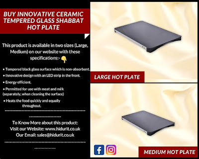 Get the best and innovative Ceramic Tempered Glass Shabbat Hot Plate with LED strip lighting certified by the Kashruth Committee in Israel at an affordable price here at hidurit.co.uk and makes things like boiling milk or meat easily with minimal time and enhance the beauty of your Shabbat also with the led strip lighting.